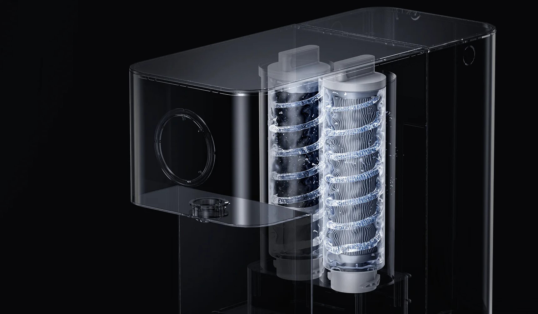 После первого использования или при замене фильтров фильтры и трубки можно разумно очистить и промыть с помощью встроенной программы, что гарантирует чистоту и высокое качество воды. Диспенсер также можно очищать вручную по мере необходимости.