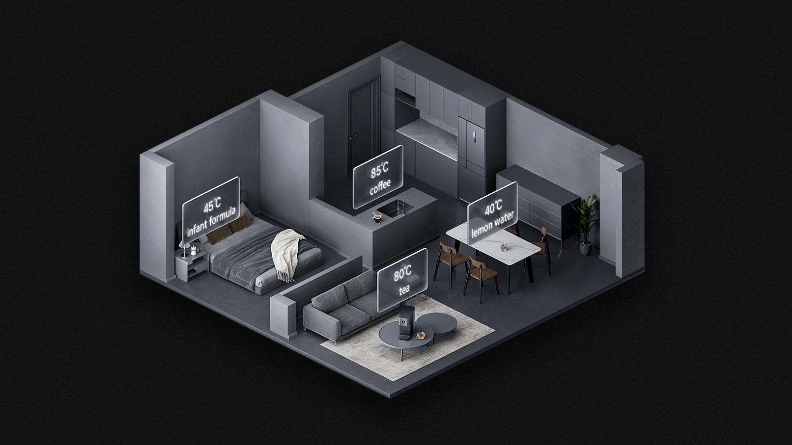 Диспенсер оснащен удобными предустановленными режимами: «Комнатная температура», «Детская смесь», «Кофе» и «Кипячение воды». Кроме того, диапазон температур можно регулировать по одному градусу от 40°C до 95°C через приложение Mi Home/Xiaomi Home. Вы также можете сохранить свои настройки, чтобы вам не пришлось настраивать их каждый раз.
