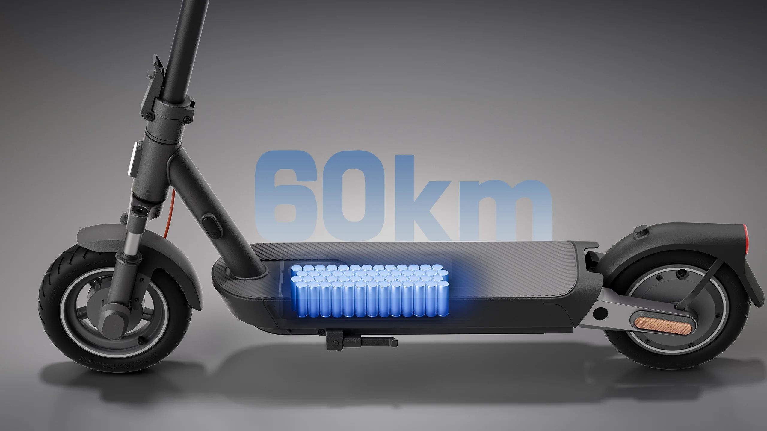 | Особенности | 3 скоростных режима, cистема рекуперации кинетической энергии, бесщеточный двигатель, влагозащита IPX5, задний стоп-сигнал, система интеллектуального управления BMS, указатель поворота, функция автоматического включения фары и заднего фонаря, передний и задний амортизаторы |