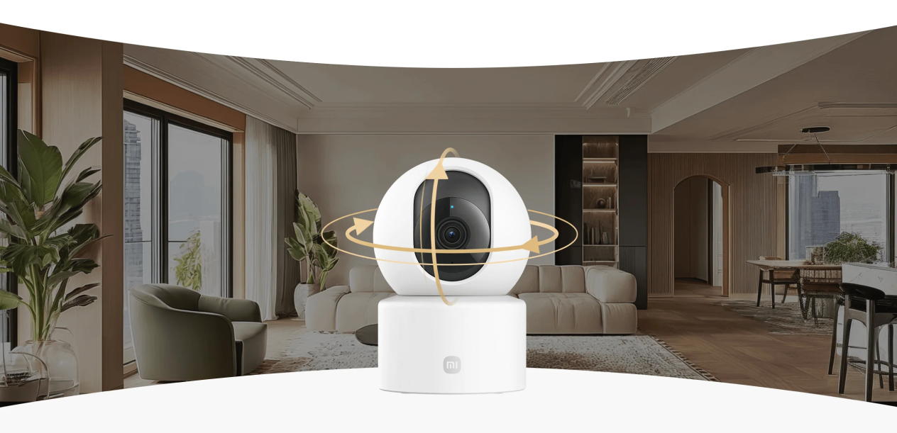 Конструкция с возможностью поворота обеспечивает круговой обзор по горизонтали до 360 градусов. Управление поворотом и наклоном осуществляется удаленно через приложение, что позволяет охватывать все пространство комнаты без слепых зон.