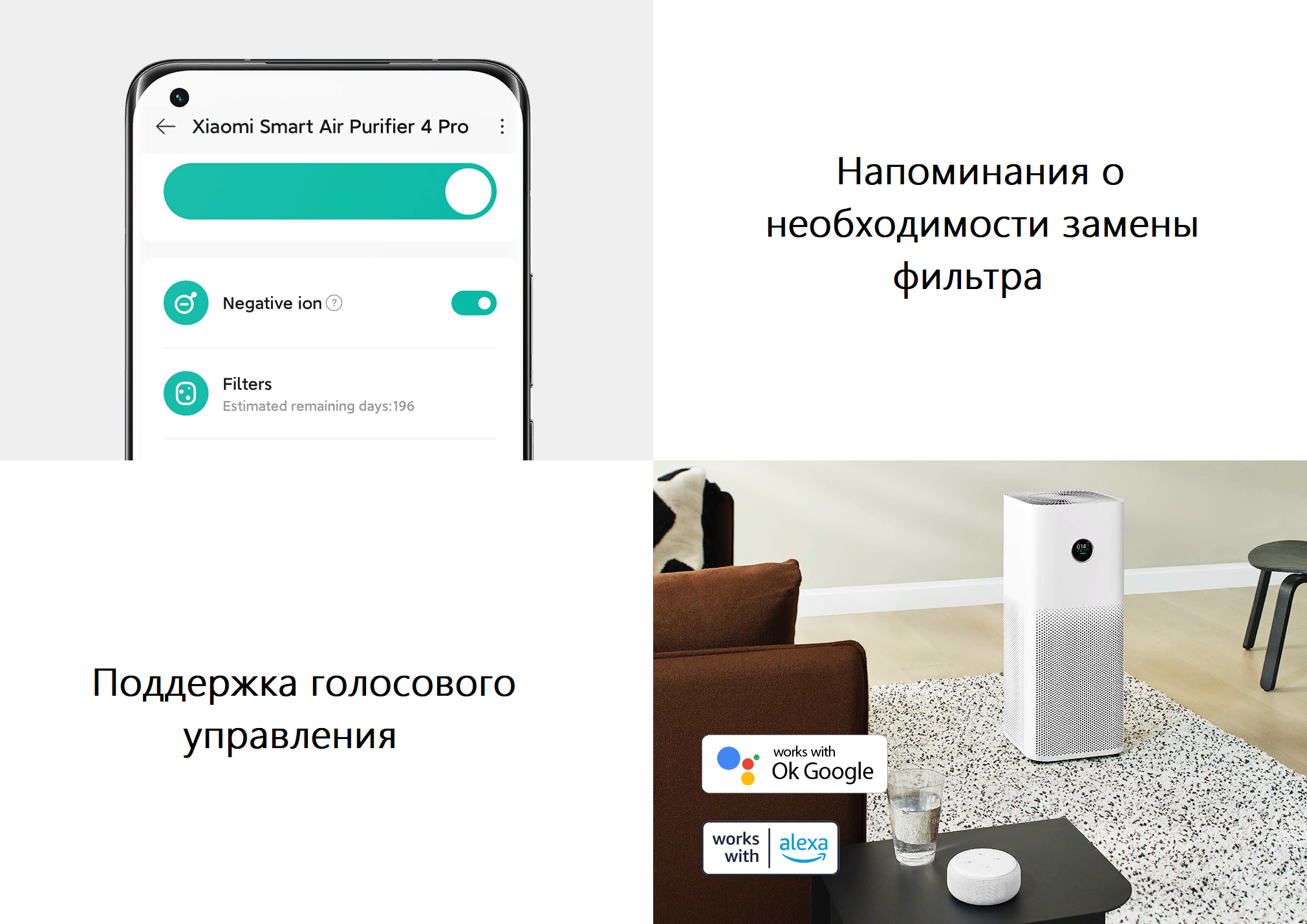 Активируйте очиститель воздуха голосовыми командами