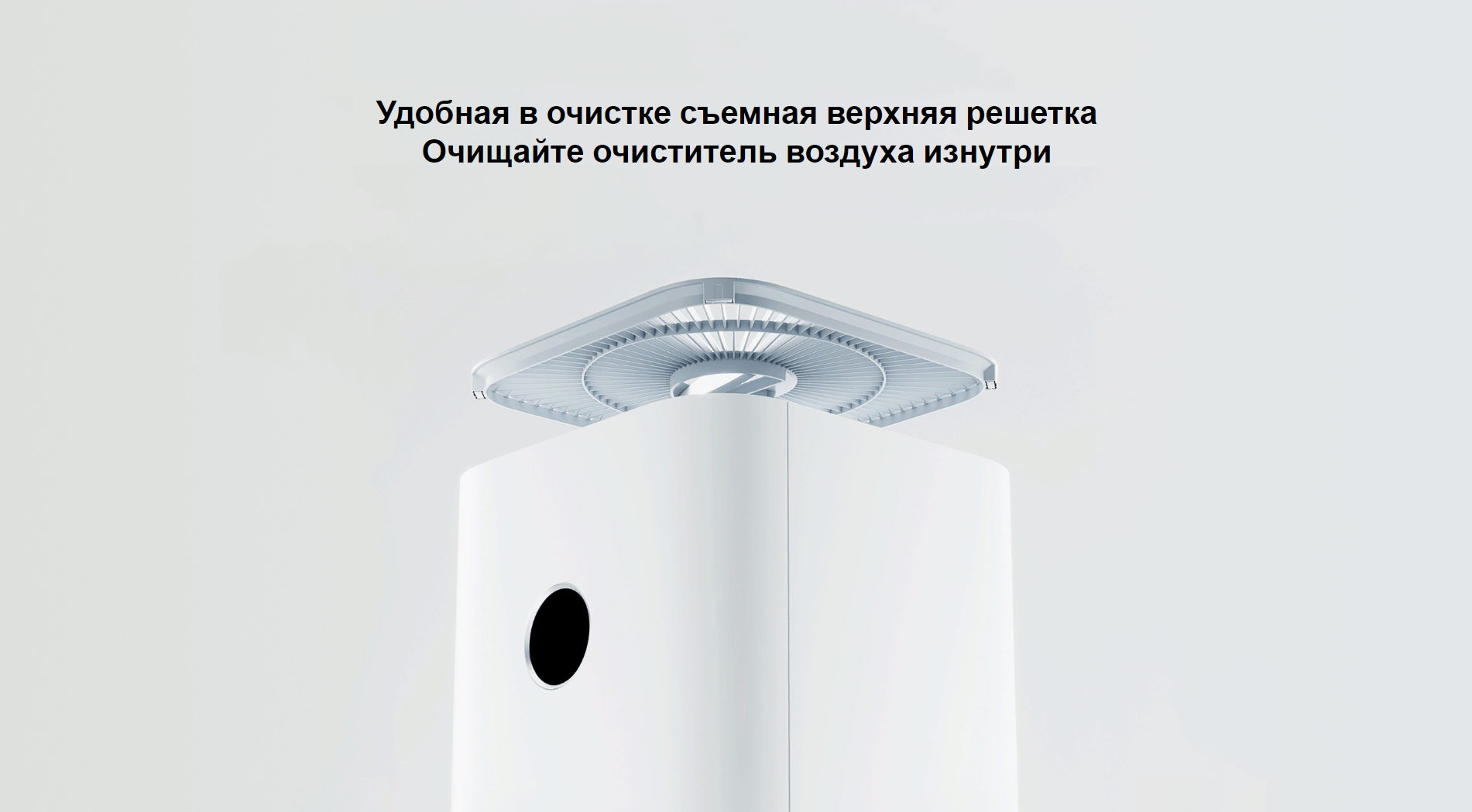 Очищайте очиститель воздуха изнутриДля защиты детей верхняя решетка прикручена винтами и не может быть снята случайно. Выкрутите винты и снимите решетку для простого доступа к лопастям вентилятора и вентиляционным отверстиям. Выполните очистку внутренних компонентов очистителя, чтобы избежать загрязнения воздуха.