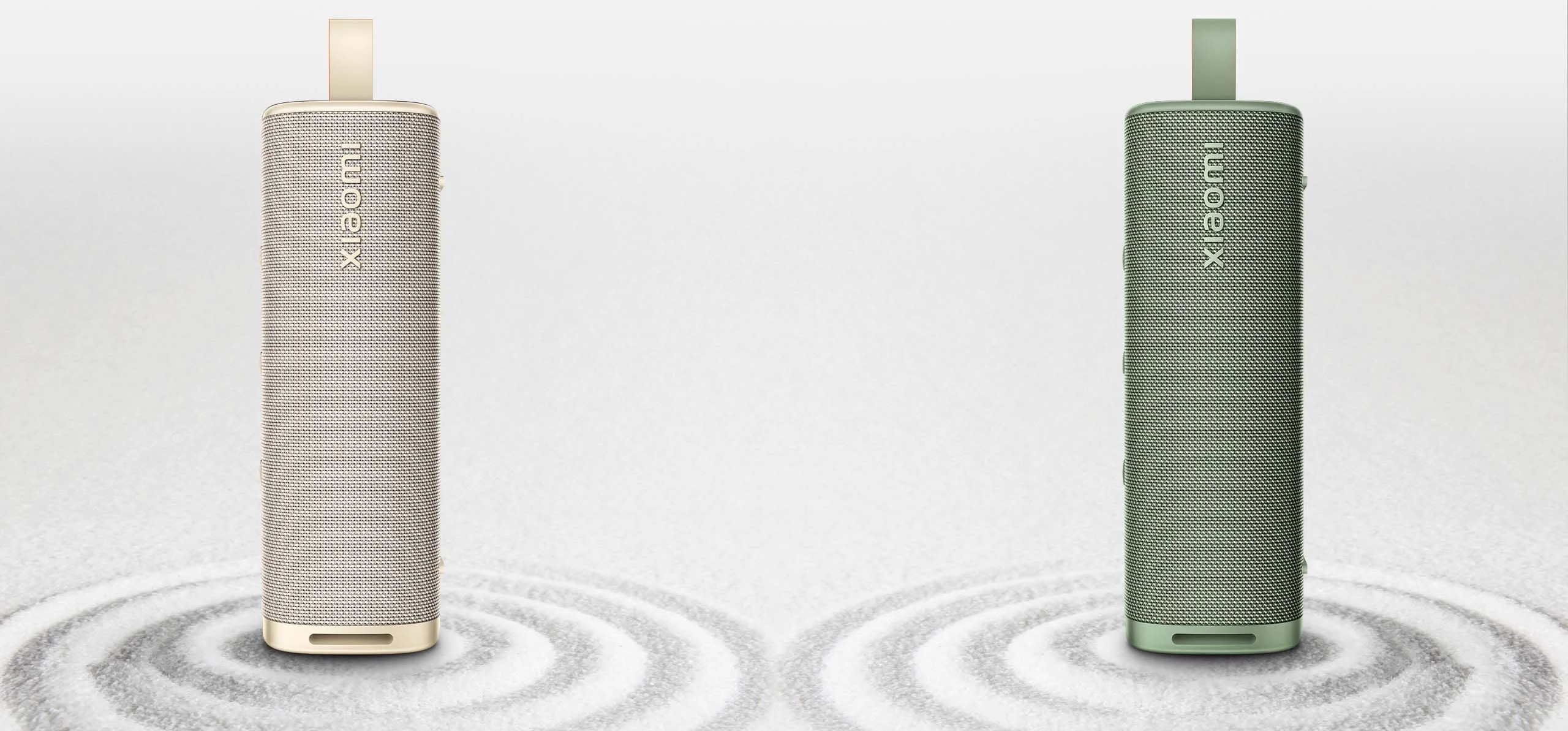Колонка весит около 597 г и легко лежит в руке. Изогнутая форма делает её удобной для переноски, а продуманная внешность подходит как для дома, так и для путешествий. Компактность позволяет использовать колонку где угодно — от комнаты до открытого пространства.